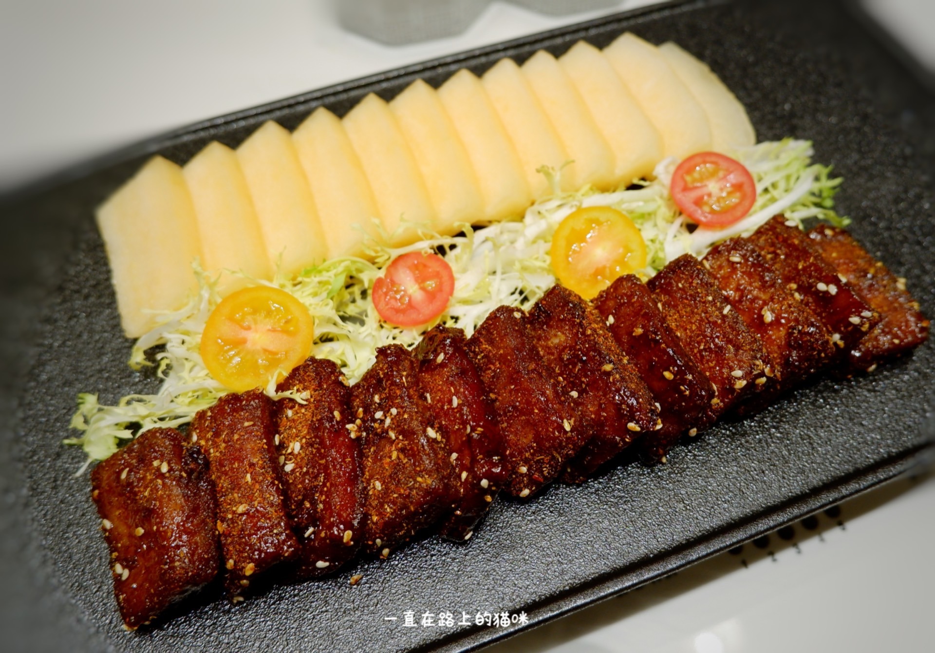 哈密瓜麻辣香酥黑猪:猪肉不知道如何做的如此香酥,咬下去酥香脆,特别的油香味让我着迷,再配上哈密瓜来解腻,吃一个不过瘾啊。
