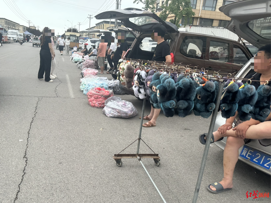 红星新闻记者搜索发现,视频中的市场位于河北衡水市枣强县大营镇。7月1日,记者来到当地,看到的场景很像一个街道上的集贸市场:100多米的街道上聚集了数百个摆摊商家,每人在车后备箱里拿出几个大袋子展示兜售,来往顾客几乎把路堵死。