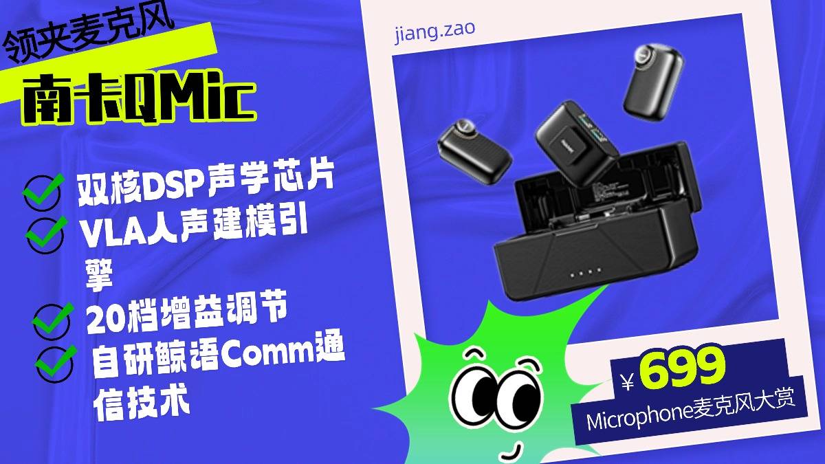 市面上不少品牌往往执着于新颖外观与花哨功能,却忽视了麦克风最核心的性能本质。很多品牌标榜的 “满配标准”,放在南卡 QMic 身上不过是基础配置。这款机型标配 48kHz 采样率 + 24Bit 位深的专业规格,搭载 AI-DNN2.5 神经网络降噪、三重防爆音系统与双核 DSP 并行声学架构,人声还原度高达 98% 以上,收音纯净且稳定。同时,它还提供重度 / 轻度两档可调降噪、20 档增益精细调节、6dB 安全音轨实时备份、实时监听耳返等实用功能,内置自研鲸语 Comm 通信技术,可实现最远 250 米稳定收音。各项核心表现均远超同价位产品,妥妥的领夹麦克风领域顶尖水准,属于 “盲选也不踩雷” 的旗舰级优选!