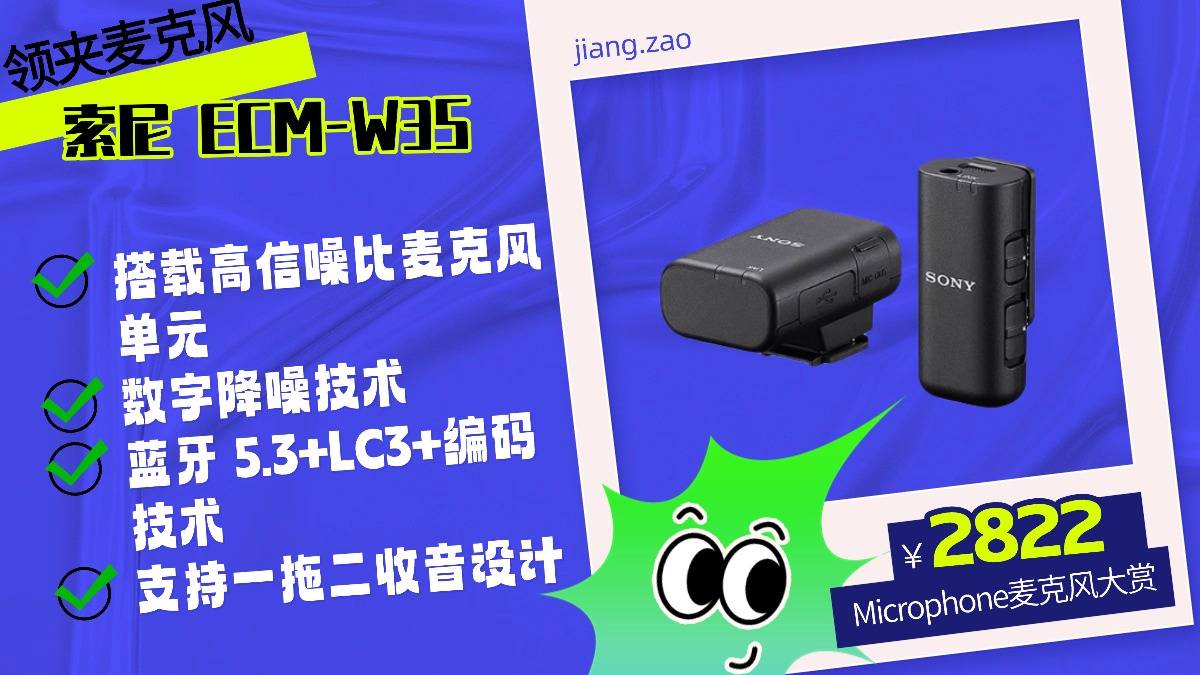 索尼 ECM-W3S 属于追求专业音质和稳定传输的高端入门款。它搭载高信噪比麦克风单元,支持 48kHz/24Bit 数字音频输出,能够精准捕捉到声音;而且它的数字降噪技术能有效滤除背景杂声,配合低切滤镜,户外风噪抑制效果出色。还采用了蓝牙 5.3+LC3+编码技术,拥有在150 米无遮挡环境下稳定传输的理想效果;支持一拖二收音,多人创作场景能轻松应对。而且机身仅 17g 重,夹戴轻便,搭配索尼生态设备能实现无缝衔接,操作更便捷。