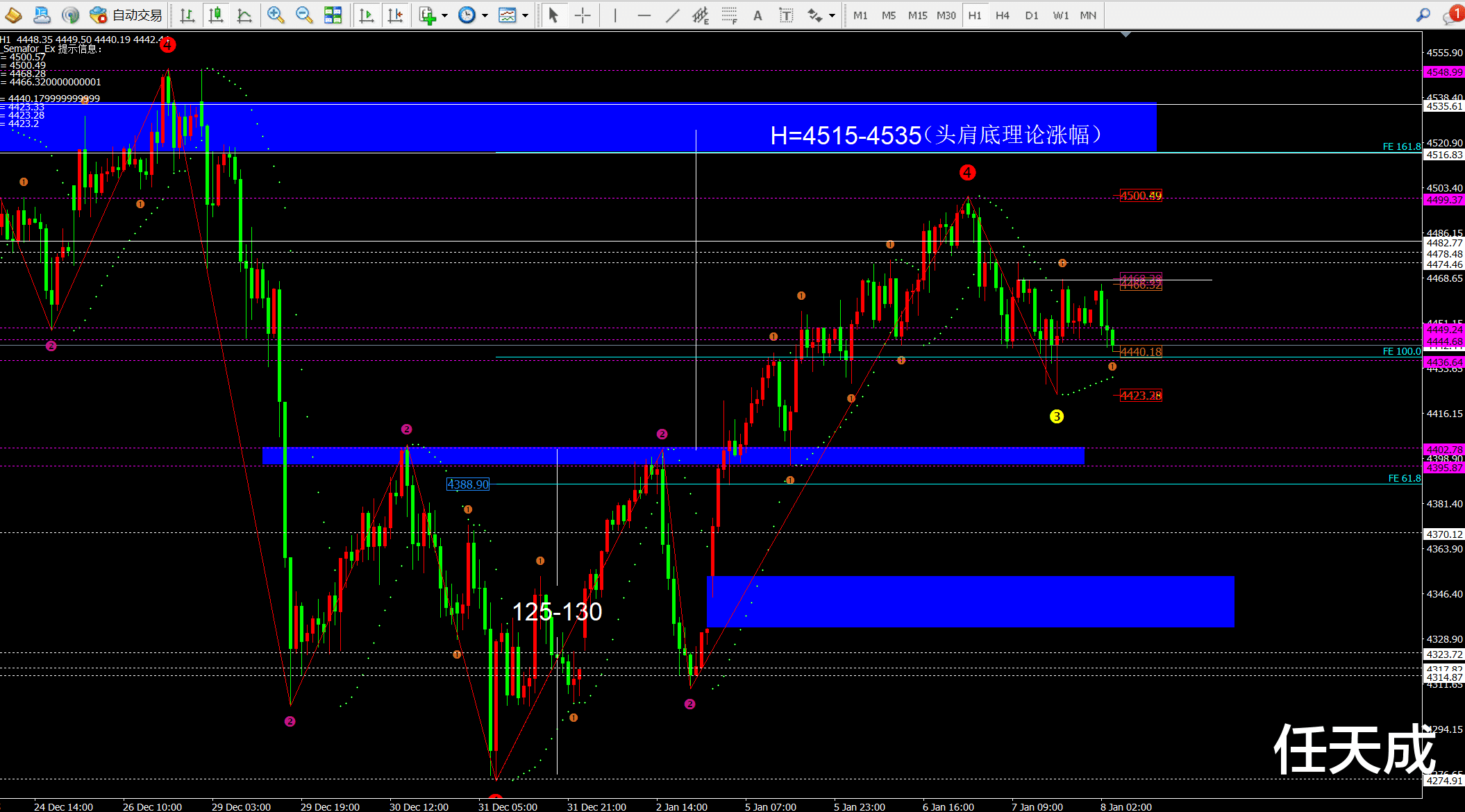 【1】 当前4460-62附近空,防守4471,目标看4440-4430-4420破位看4400-4380