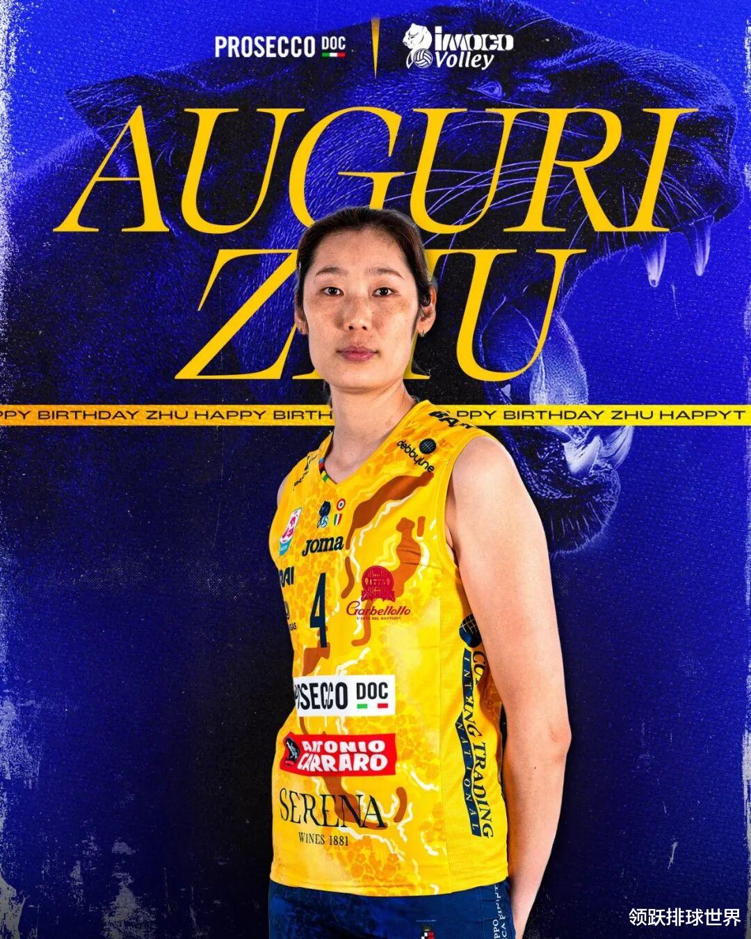 目前正在意大利征战的朱婷,科内利亚诺女排也不忘为当家主攻送上生日祝福,在官方社群发文中写道:欢庆在东一区继续,朱婷,生日快乐!又大一岁,开心万岁!