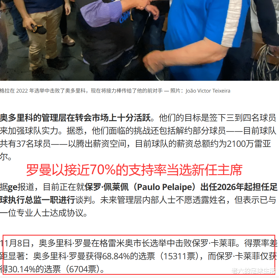 在此前举行的主席选举中罗曼以接近70%的支持率当选了格雷米奥的主席,新主席预计在巴甲最后一轮比赛结束后的一周正式就职。