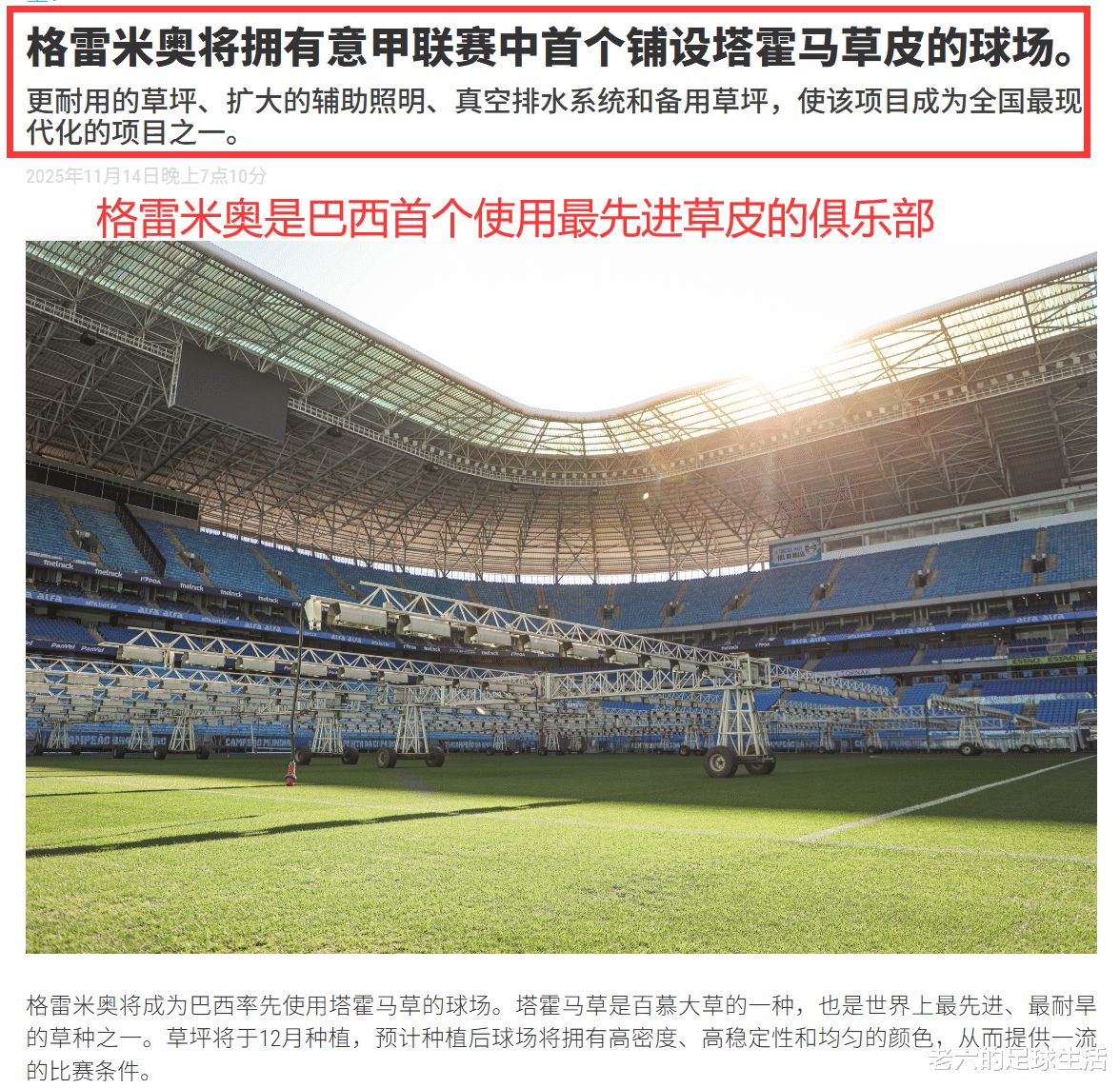 球场内部也是焕然一新,他们打算使用最先进的塔霍马草作为球场草皮,美加墨世界杯七座球场有六座选用了这种草皮,这也是整个巴西第一个使用这种草坪的俱乐部。