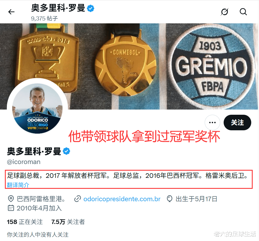 而这也是罗曼能担任主席的原因之一,他在2016以及2017年担任俱乐部的足球副总裁带领球队夺得了巴西杯和解放者杯冠军。