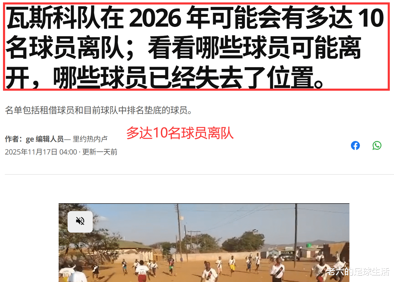 瓦斯科达伽马这边球队现在面临一个较严重的问题就是多达10名球员即将离队,许多球员合同到期,而且表现并不符合预期。