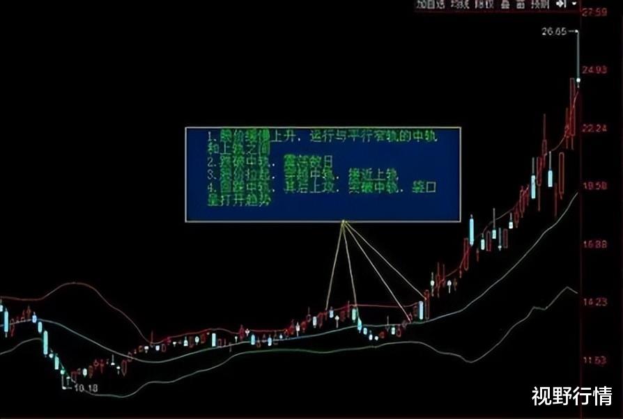1、股价横盘震荡或缓慢上行,BOLL呈现平行窄轨,股价运行在BOLL的中轨和上轨之间;