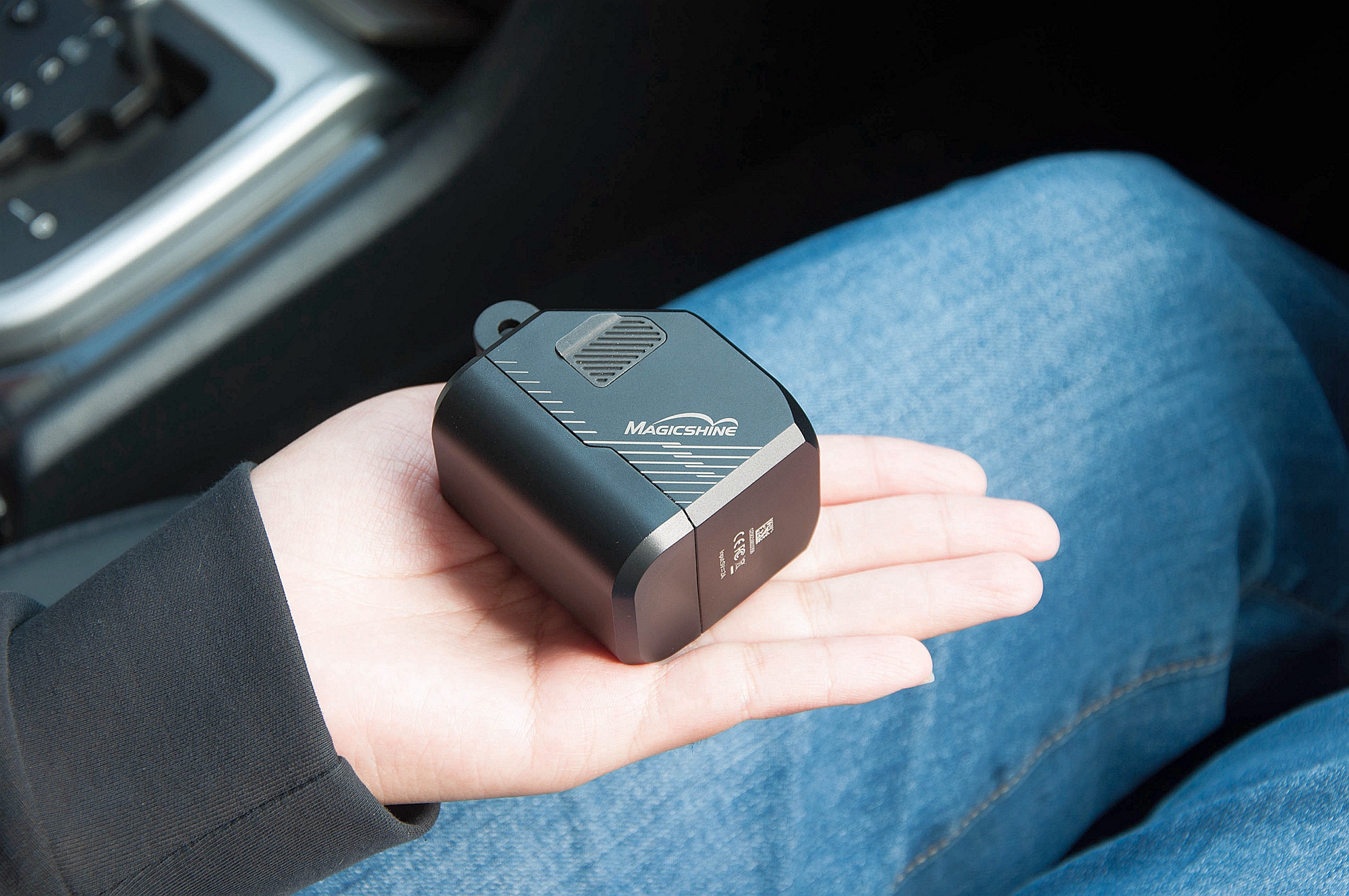 先给大家看看迈极炫CBL 1600 PRO磁吸吊装前灯吧,整体设计简洁精致,有月夜黑、珠光白两种配色可选。灯体外壳由航空级铝合金打造,质感细腻,兼具耐磨、耐刮、耐腐蚀特性,日常使用无惧磕碰剐蹭。同时也支持IPX6级防水,雨水冲淋也不影响使用体验。小巧的体积握在掌心,单从外观就能感受到其高品质的工艺水准。