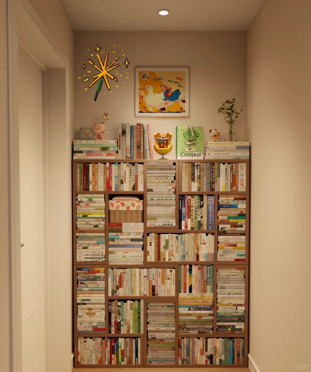 上面说完孩子的玩具收纳区,现在来说说书籍收纳区,但是很多人就有疑问,现在谁还看书都是用手机。