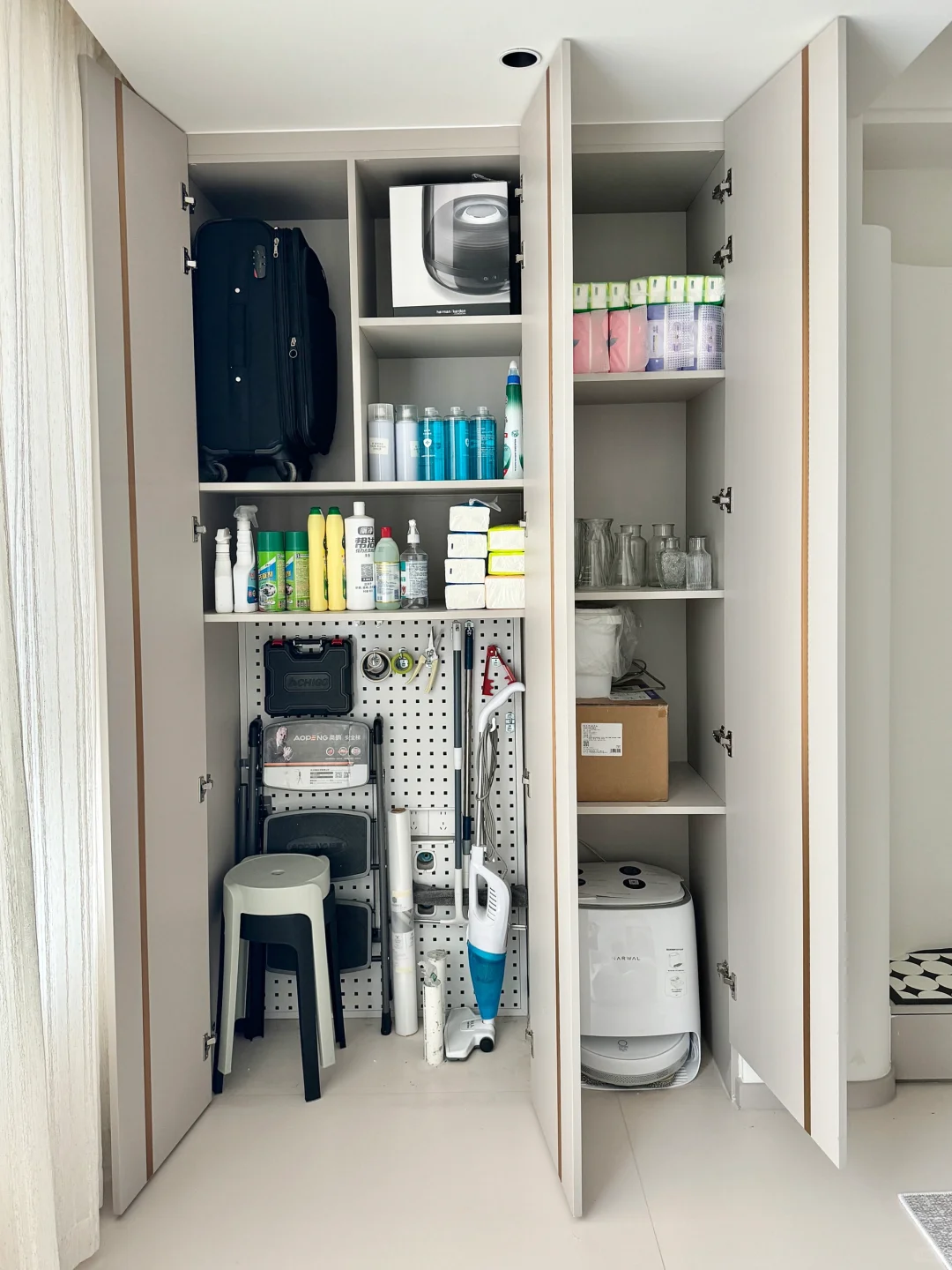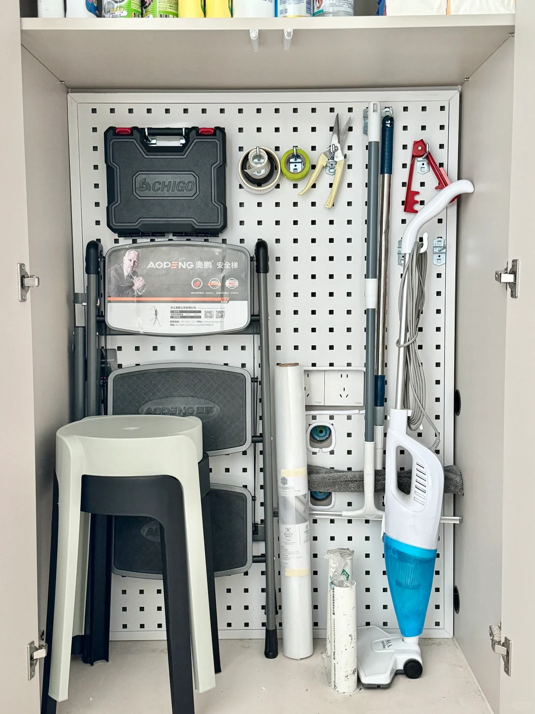现在家庭的清洁工具都很多,如果没有一个收纳这些的空间,如果堆在一起非常的乱,而且不卫生。所以我们一定要给这些工具留出一个区域,比如阳台,或者是餐边柜位置,都是可以的。