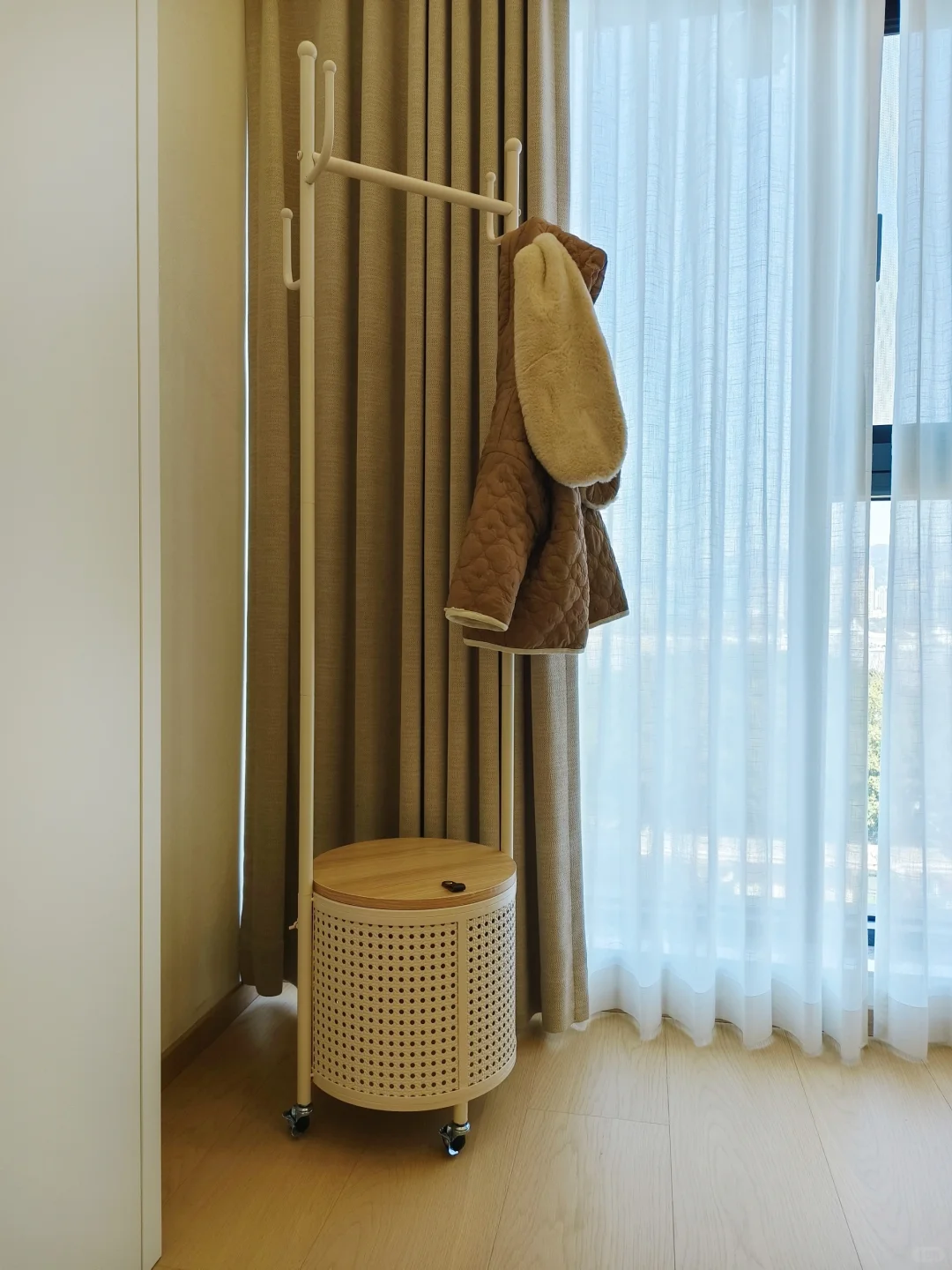 其实玄关的位置是最需要挂衣区的空间,平时出门回家之后,直接在门口就可以将衣服都换好,从外面穿回来的衣服,也不会弄脏屋子里。