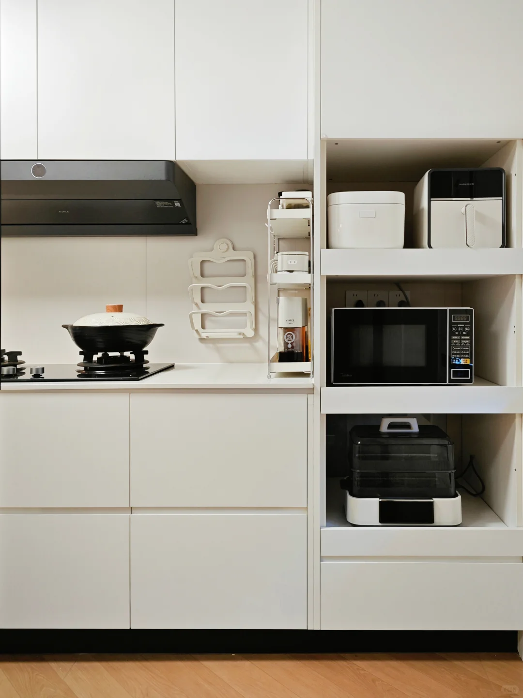 现在家家都有几个小家电,但是如果放在台面上,就显得很凌乱,但又想放在柜子里收纳,还考虑到经常使用又比较麻烦,最后只能将就放在台面上。