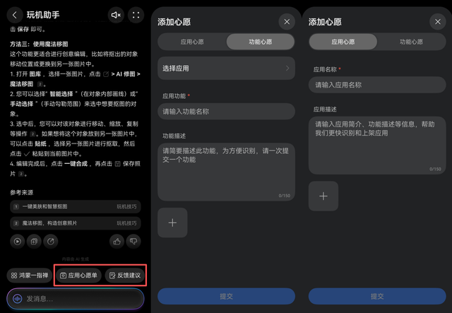 如果你有特别期待上线的应用,不妨去【应用心愿单】里许愿。使用中遇到问题或有建议,也可以通过【反馈建议】直接提交给鸿蒙团队。你的声音,他们真的在听。