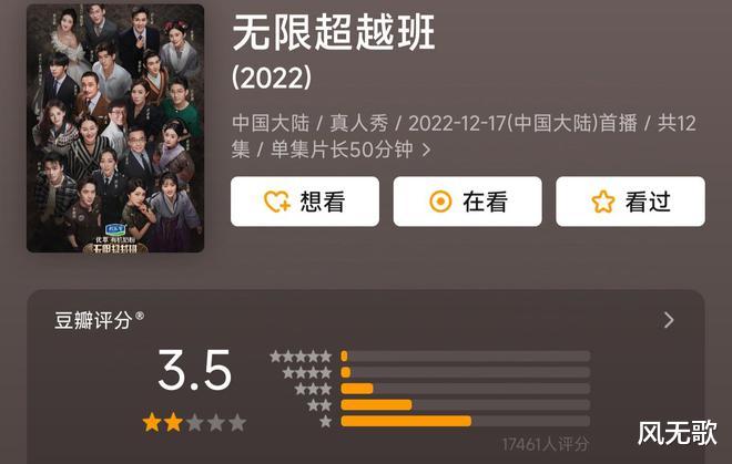 《无限超越班》,第一季播出之后负面评论一面倒,网络评分更是只有3.5分,哪怕是请到了成龙、尔冬升这样的大咖坐镇,但仍改变不了这档综艺惨淡的口碑。