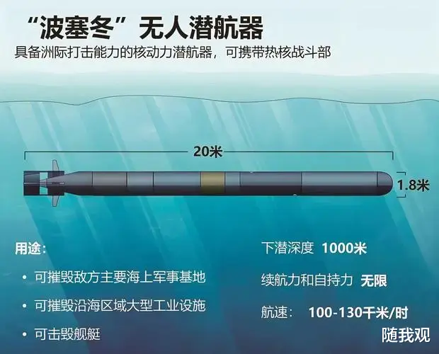 下面是关于"海燕"核动力巡航导弹和"波塞冬"核动力无人潜航器的信息图。