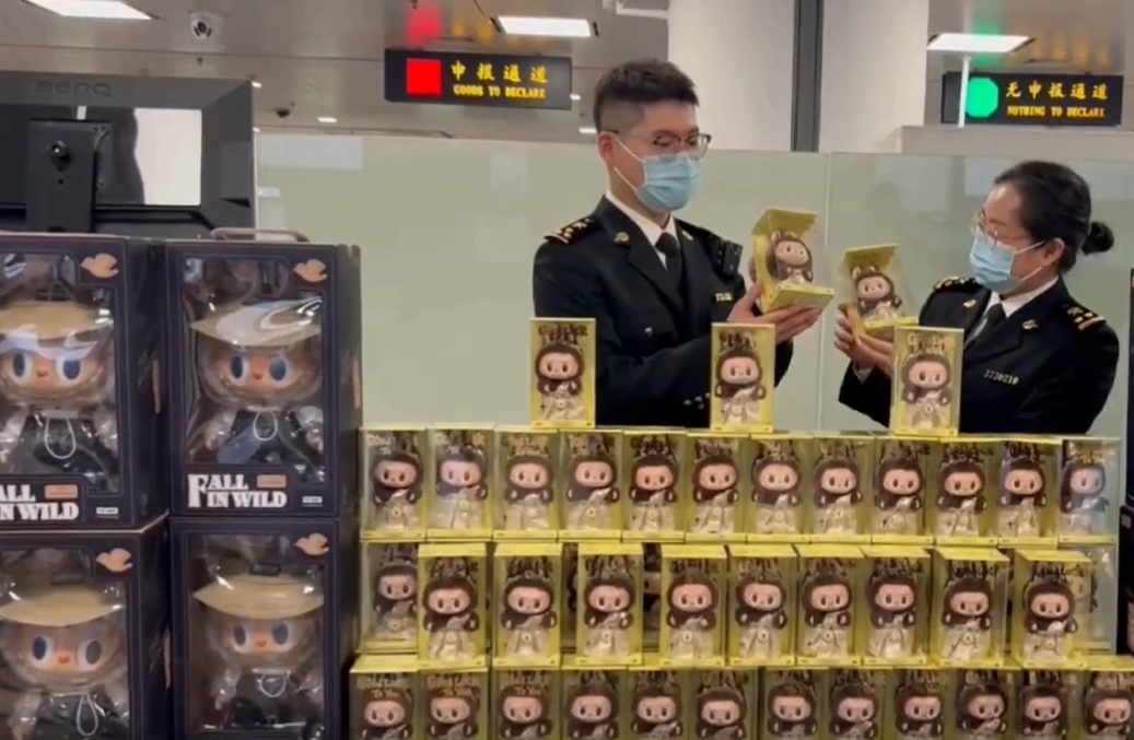 经后续查验,查获泡泡玛特玩偶70个,该批玩偶属同一旅行团。