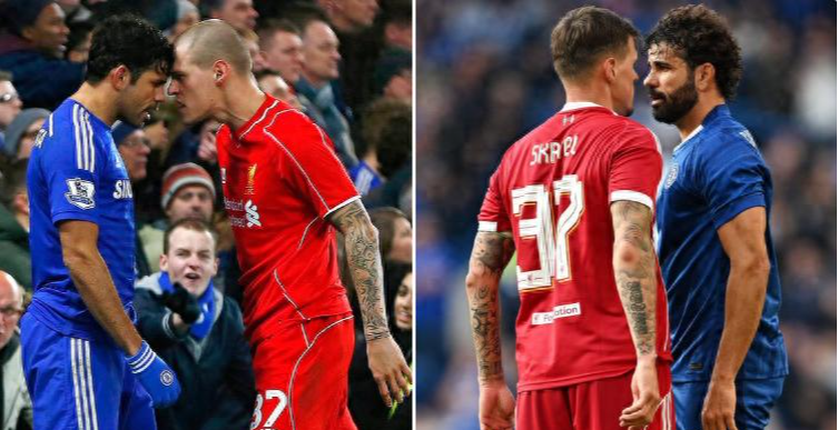比赛上半场,科斯塔与利物浦名宿马丁·斯克特尔在一次拼抢中发生身体碰撞。科斯塔随即起身,直接冲向对方,两人几乎发生正面冲突,所幸裁判及时介入将二人分开。