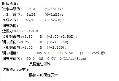 冷女士因为平时不常戴镜,且工作主要通过手机,对于其眼睛在看近时几乎不用动用眼睛的调节,并且前检查发现眼睛的视功能存在异常。当做完近视手术后双眼恢复正视,此时再看近时需要更多的调节力,然而眼睛原有的调节力不能满足现在的需求,就导致了看近模糊的现象。