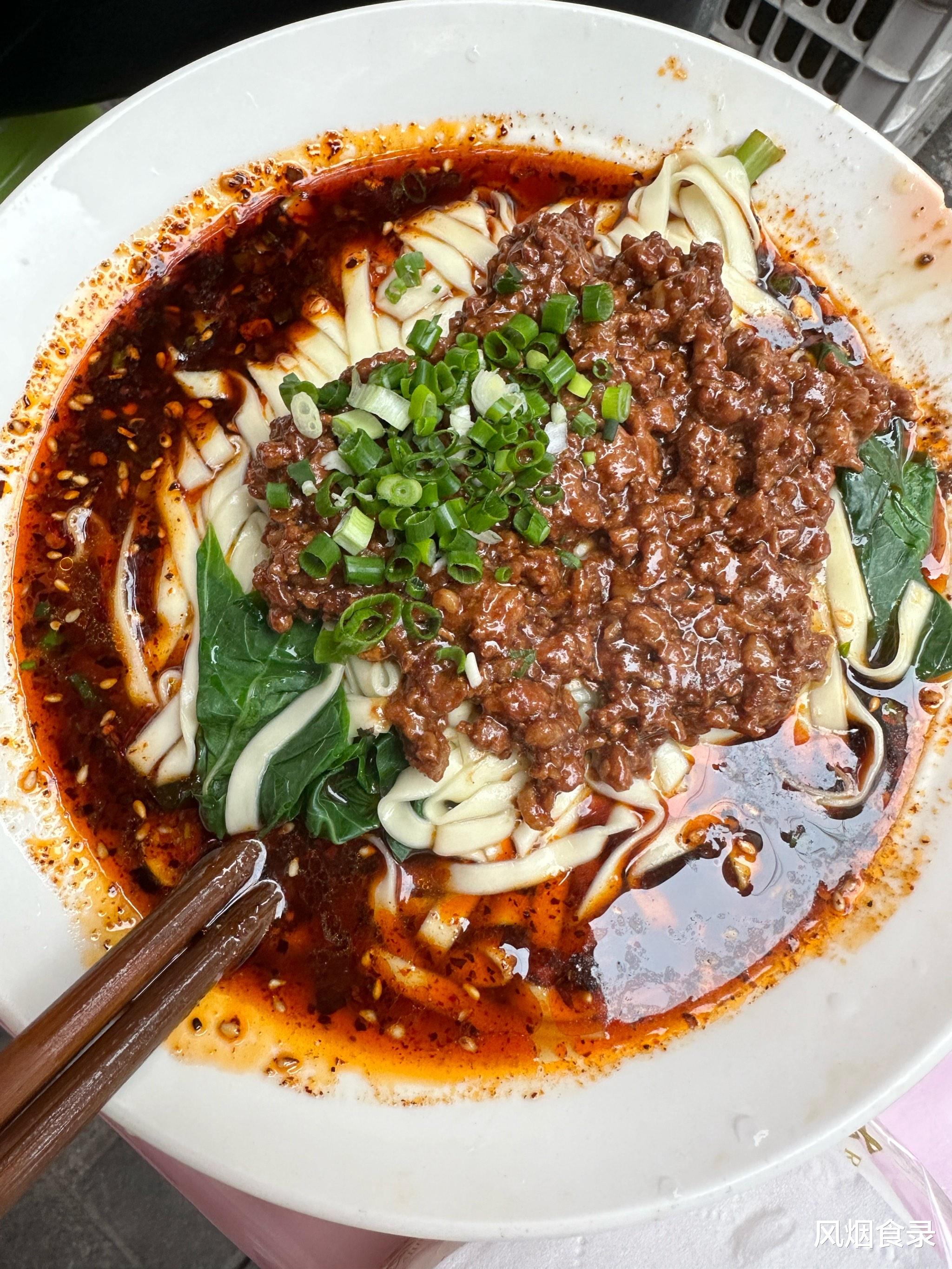 碱水面滑爽筋道,红汤用牛骨熬制,油辣子必用二荆条、灯笼椒、石柱红“三椒合一”,佐料碗能摆半张桌,