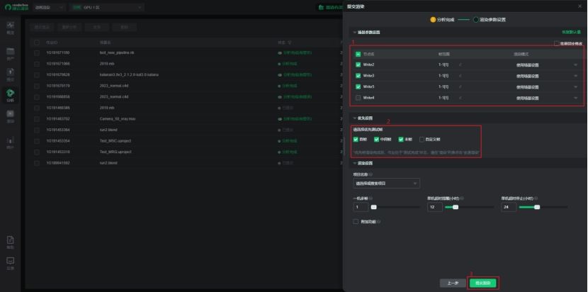 4、为确保最佳效果,建议您在点击【提交渲染】之前,先选择优先帧测试。测试帧渲染完成后,请确认是否符合预期效果。如符合,请在【渲染列表】中点击【全速渲染】。