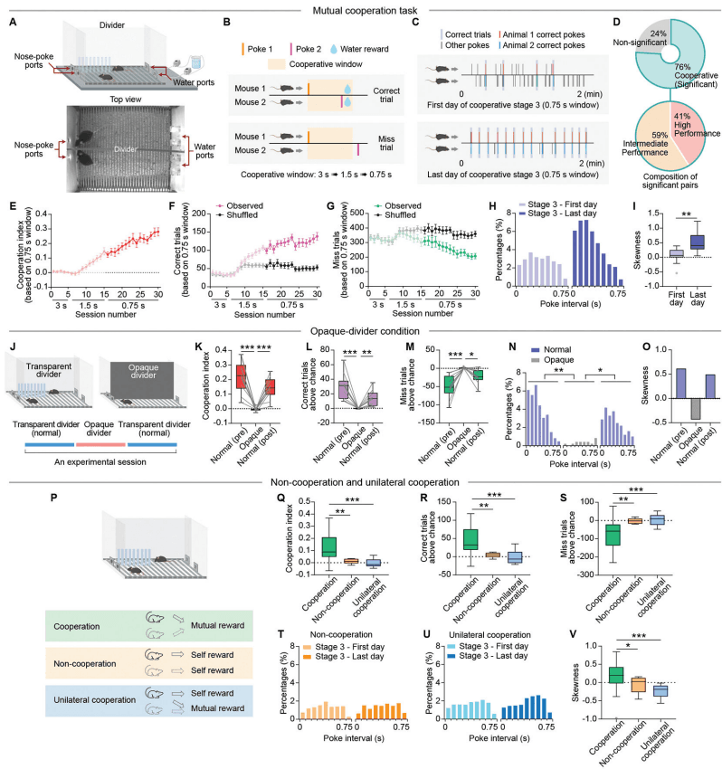 更有力的证据来自“拉窗帘”实验。当研究人员把中间透明的隔板换成不透明的板子,挡住小鼠的视线,切断它们之间的视觉交流后,它们的合作成功率瞬间暴跌。这直接证明了:能看见队友,获取队友的信息,是达成“神配合”的绝对前提。