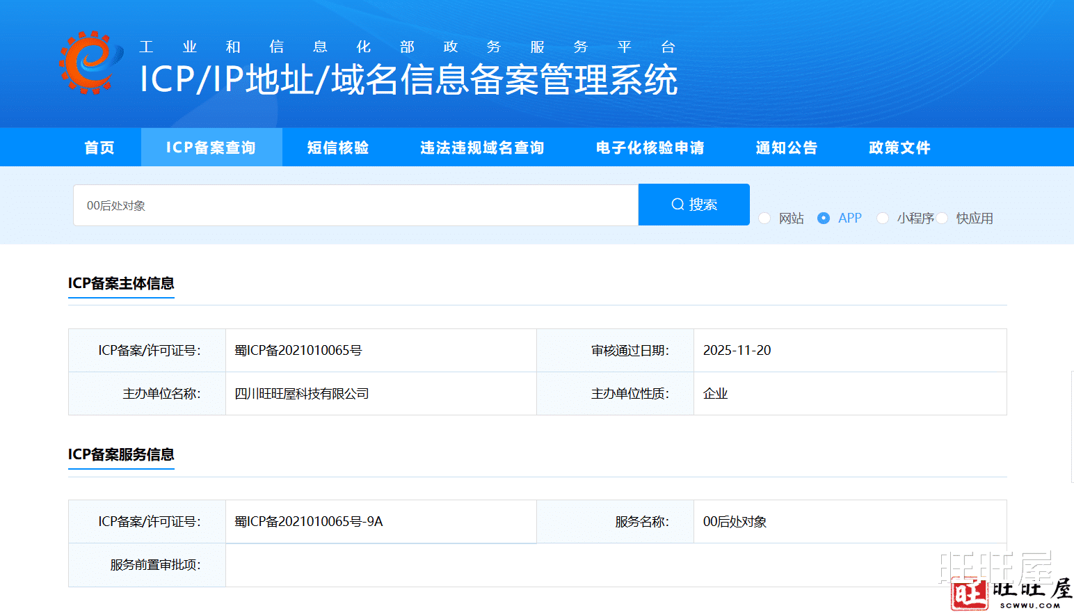 00后处对象已于2025年12月4日已通过全国互联网安全管理服务平台备案。