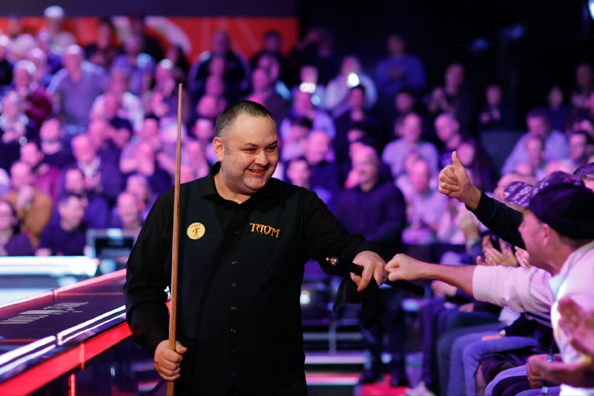 比赛开始后,第一局特鲁姆普打出单杆62分,以70-14先拔头筹,第二局马奎尔仅得26分就中断进攻,特鲁姆普上手轰出单杆100分,第三局特鲁姆普防守不到位留下机会,让马奎尔打出单杆86分,第四局双方都有失误,没能做到单杆制胜,乱中缠斗特鲁姆普更稳,他以67-30完成超分。
