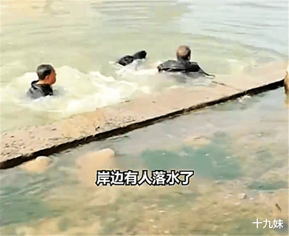 女子应该不会游泳,身体在水里乱扑腾,头始终埋在水面之下,眼看就要沉下去了,情况十分危急。两位大爷一左一右,一个用力往起拉,一个从底下往上托。