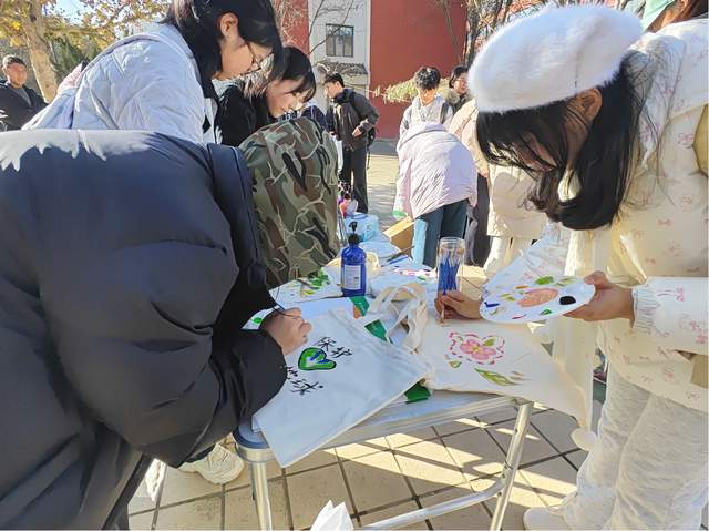 作为现场核心互动环节,“袋走绿意,绘就环保”环保涂鸦大赛人气高涨。活动摊位前,师生们有序领取空白帆布袋与环保颜料,围绕“减塑降污”“绿色校园”“新污染物治理”等主题尽情创作,灵动的线条、鲜明的色彩将环保理念融入艺术创作之中。志愿者全程提供技巧指导,完成后的作品经评审后,优秀作品被留存展示,获奖者领取了专属奖品,现场共发放定制环保帆布袋200余个,所有参与者均带着自己的专属环保单品满载而归,以实际行动替代塑料袋使用。同时,活动现场通过知识问答、互动咨询等形式吸引师生广泛参与,为积极互动者发放文创中性笔200余支及各类环保小礼品,累计发放新污染物治理宣传资料800余份,让环保知识随物料一同走进师生生活。