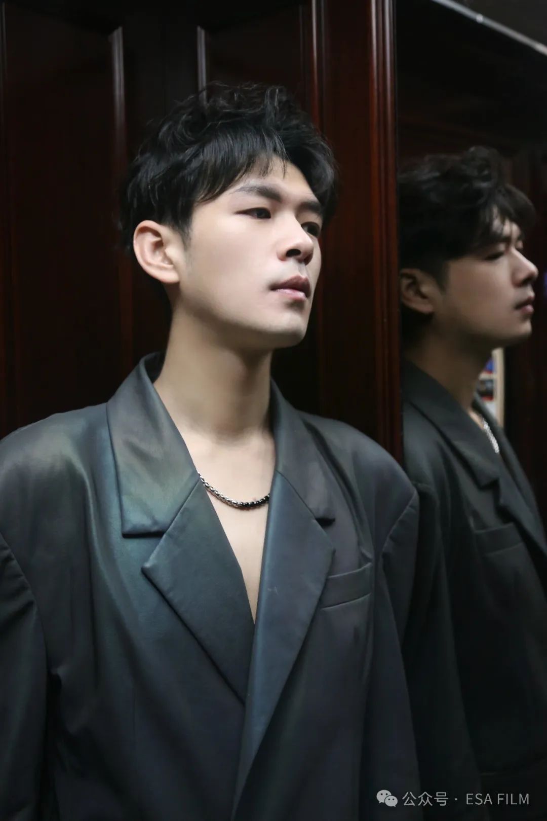 盛英豪身着休闲西装,巧妙融合了科技与时尚的前沿理念,随着现场灯光的微妙变化,西装表面呈现出流动的色彩渐变,仿佛与周围环境对话,每一次转身都闪烁着不同的光彩,令人目不暇接。