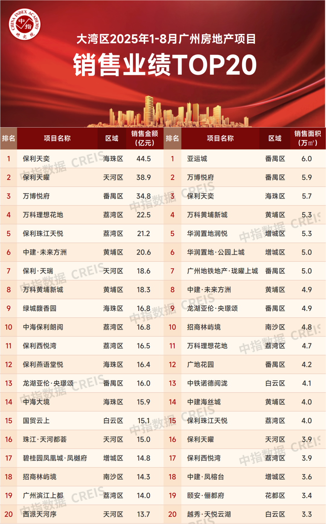 除了以上8个盘,还有亚运城,万科理想花地,中建海丝城,广地花园,保利天曜,珠江天悦这些也在榜的。不在榜单上的热门盘,比如越秀云悦,嘉悦云启,辰园湖境,保利珠江印象,因为开盘时间晚/体量不大等原因,没有出现在榜单上。