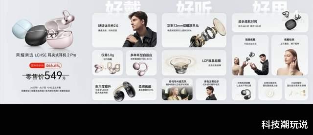 此外发布会也带来全新荣耀耳夹耳机2 Pro,搭载全新舒适钛拱桥 2.0,佩戴更舒适、听感更通透、交互更智能,搭配充电仓可达44小时续航,是当下全民耳夹时代的满配答案,国补到手价 466.65元,11月27日正式开售。