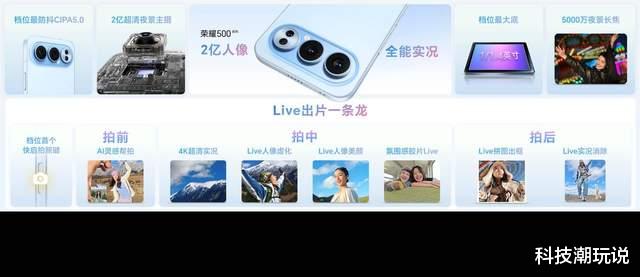 在影像体验层面,荣耀500系列带来档位超全实况体验,针对Live实况拍摄场景,行业首发前后置Live人像,让live帧帧有虚化,帧帧有美颜,帧帧有氛围。荣耀500系列还带来行业超全的氛围感胶片色彩,共有6种胶片Live任意挑选。同时,Live路人消除也让动态瞬间免受路人干扰,时刻主角。此外还支持4K转Live,轻松将4K视频转成4K Live分享朋友圈。