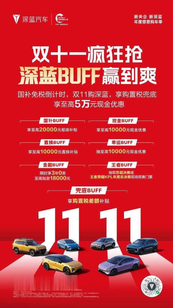 而且近期深蓝汽车还推出了购置税补贴和双十一疯狂抢活动,七重深蓝 BUFF 叠加着用简直赢到爽,至高还能享 5 万元现金优惠,价格诚意属实拉满了,要是你也对深蓝 S05 充满兴趣,不妨抓紧去试驾体验,相信它带给你的惊喜远不止于此。