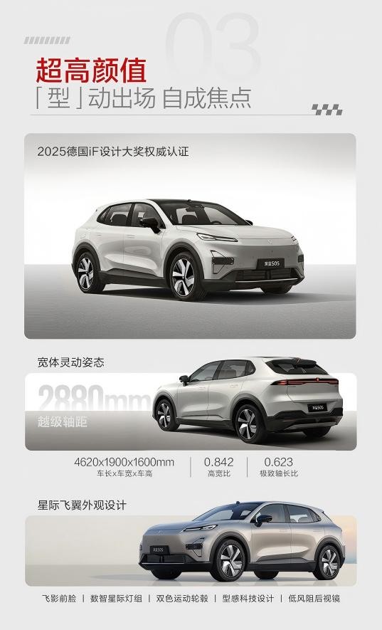 全新深蓝 S05 的造型实力,有德国 iF 大奖作为国际认可的品质佐证,其灵感源自星际飞翼,灵动流畅的整体姿态中满是飞行元素的巧思。