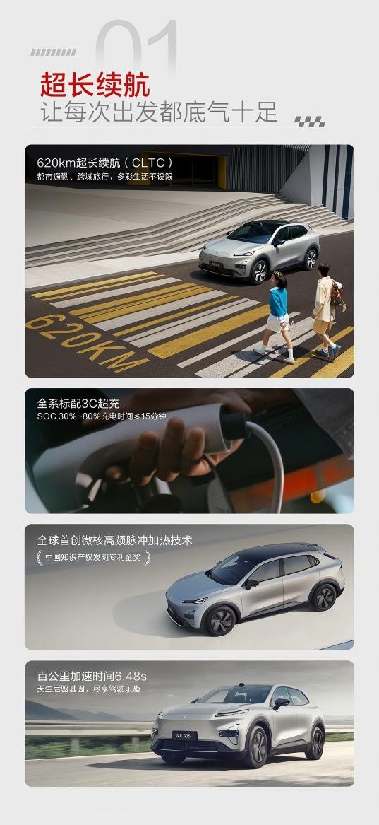 要知道深蓝 S05可是全系标配 3C 超充技术,SOC 30%充电至80%,所需时间不超过 15 分钟。也就是说在高速补能环节,我们上个厕所、喝个奶茶的时间,这边补能基本就能够结束,非常方便。还要值得注意的一点是,深蓝S05采用的全球首创微核高频脉冲加热技术,可实现-30℃低温环境下,电池温度提升20℃,动力性提升50%,充电时间缩短15%,切实解决冬季用车痛点。