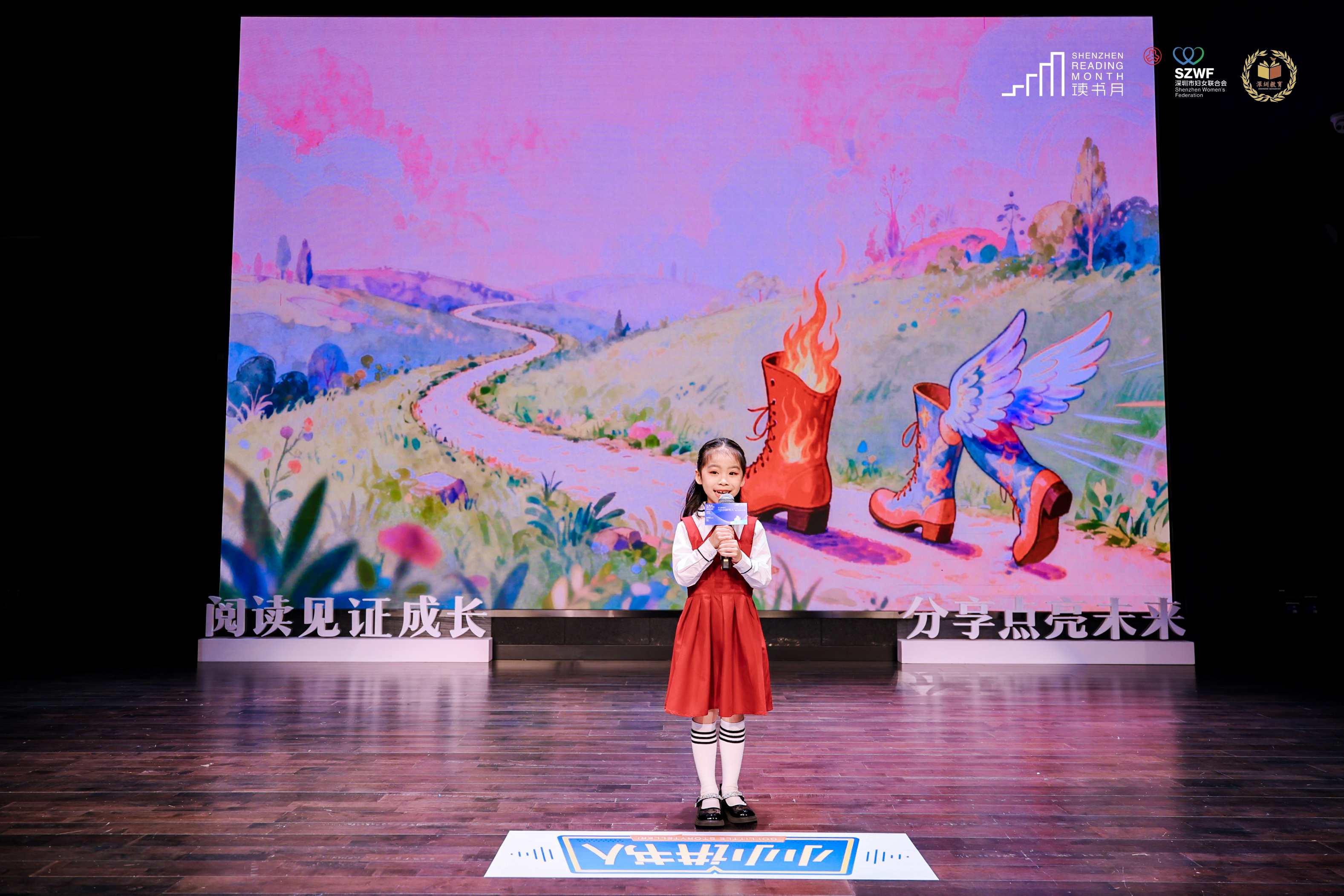 欧若琳一上台引得全场的“大朋友”发出善意的笑声。别看她个子小,她用稚嫩却真挚的声音分享了她在阅读《火鞋与风鞋》后的感悟,从书中父亲与孩子的关系中获得了自己的力量。