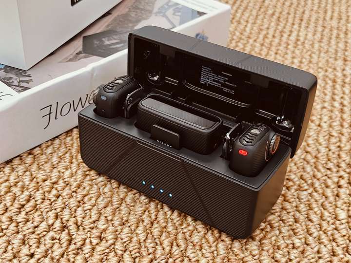 最后就是拍摄最担心的续航问题,这款南卡QMic领夹麦克风单个发射器内置 180mAh 电池,满电连接使用时间大概是6.5 小时左右,接收器内置 300mAh 电池,并且还支持反向为发射器补电,充电仓内置1800mAh电池 ,综合续航可达24小时,满足全天高强度拍摄需求。