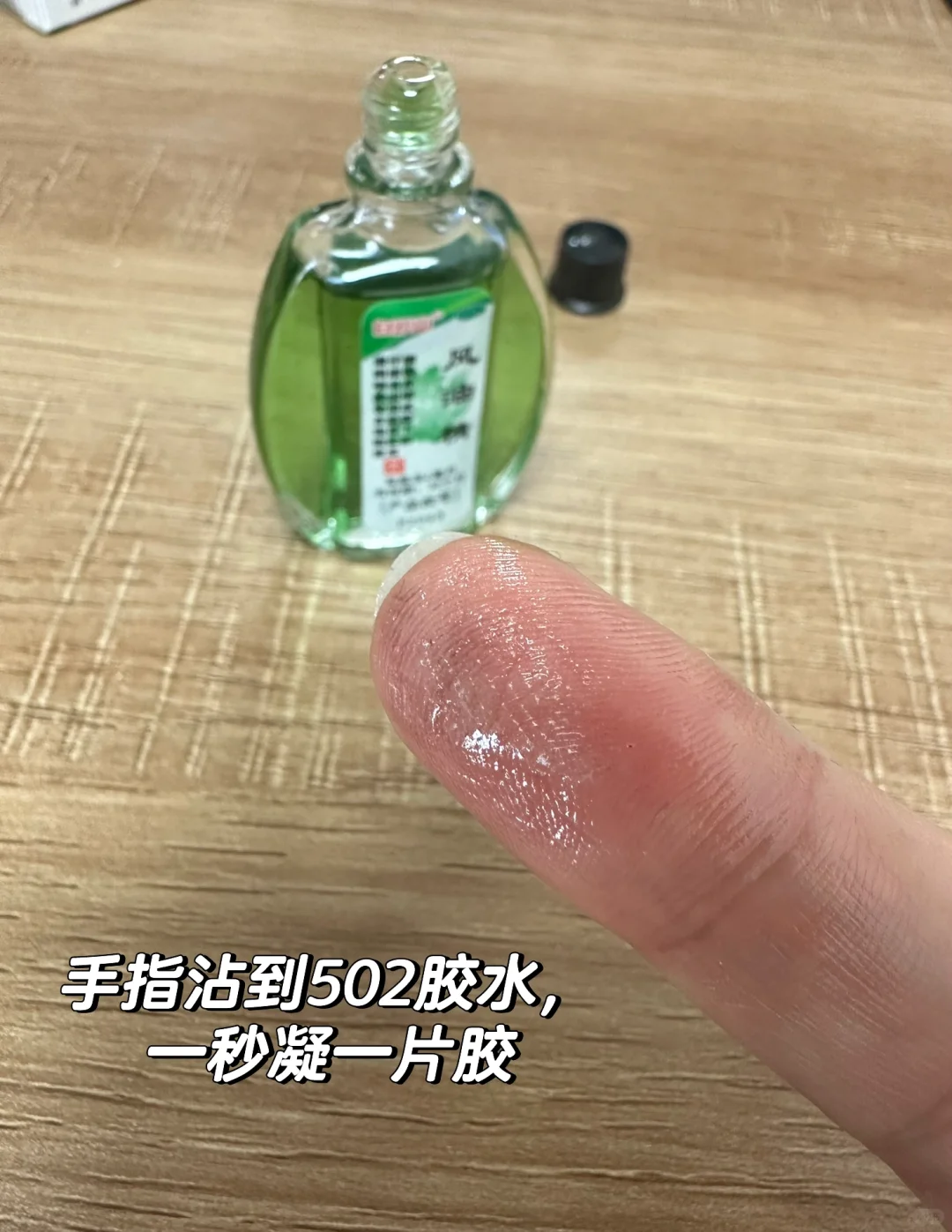 如果你在使用502强力胶水的时候,不小心将胶水弄到了手上,导致两个手指被粘在一起了,用大量水冲没有太大的效果,可以使用风油精滴两滴风油精在粘合处,