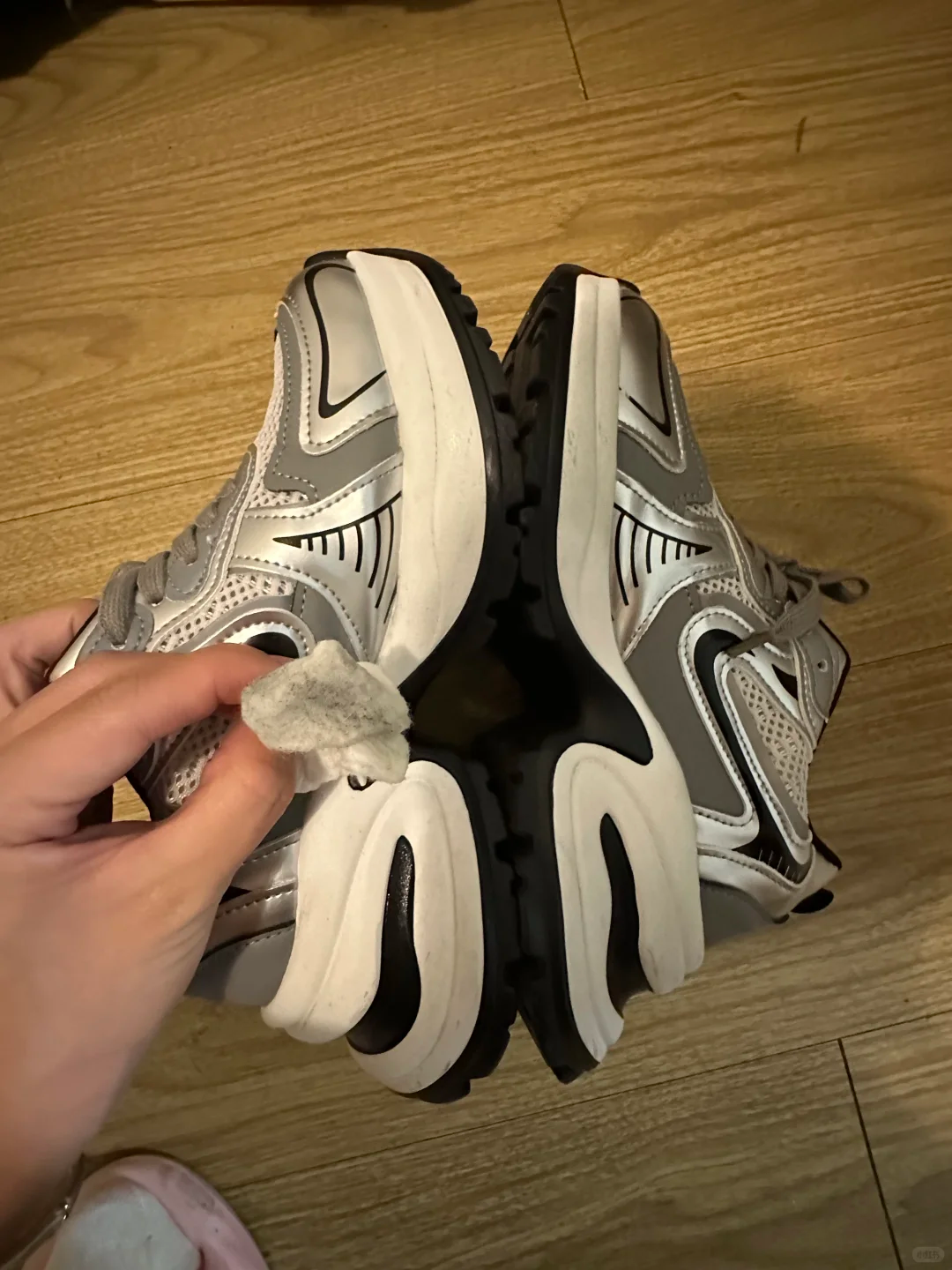 教你一个小妙招,可以将风油精滴在上面,然后再用纸巾反复擦的痕迹溶解掉,而且不会伤害鞋子。