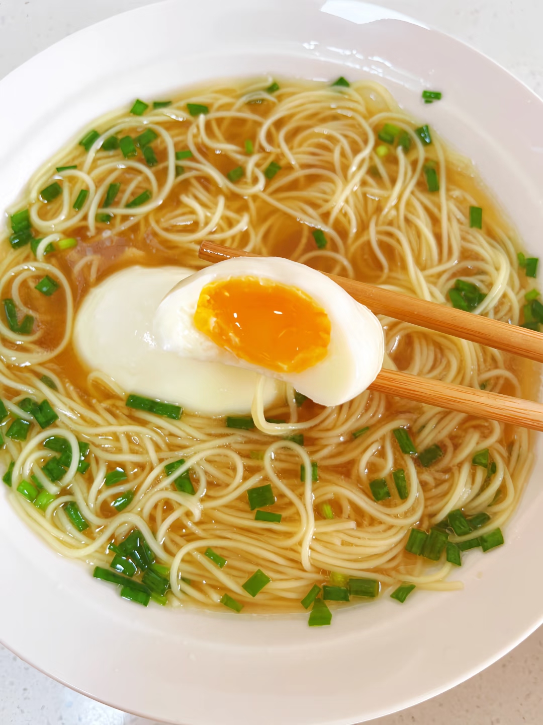 将过凉的面条盘成鸟巢状放入汤中,顶部放上溏心蛋或午餐肉。最后滴两滴香油,撒几粒芝麻,瞬间提升颜值。若想更精致,可以用海苔剪出星星点缀,或者插根小香葱当旗子。溏心蛋的做法也简单:水沸后煮6分钟,捞出过冰水,轻轻一敲就裂开完美的溏心。