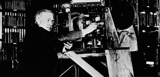 1894年,托马斯·爱迪生发明的连续照片放映机,人们通过这个笨拙的机器,可以看到连续运动的图像。这个放映机引发了群众的好奇,唯有一个人,在看完之后产生了极大的兴趣,并进行了深入思考。