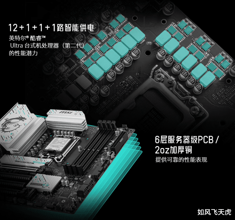 遇事不决迫击炮,微星 MAG B860M MORTAR WIFI主板,它采用了12+1+1+1路智能共供电,6层服务器级PCB,2盎司加厚铜,双8PIN CPU供电确保供电安全。散热方面采用扩展性VRM散热片,高品质导热垫。M.2冰霜铠甲、南桥散热片,充分满足了主板的散热要求,确保良好的散热效果,保证主板的正常运行。