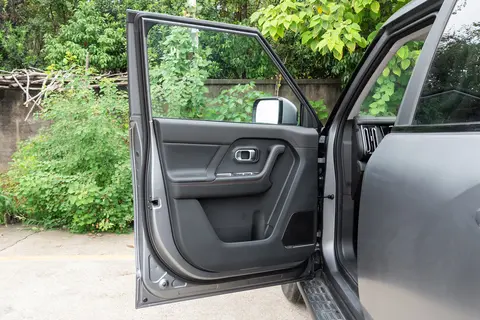 比如,它的四叶草大灯设计非常独特,不仅辨识度极高,而且远光照射距离达到了185米,夜间行车时安全感满满。贯穿式的地平线灯带连接左右大灯,解锁时还有炫酷的迎宾效果,科技感直接拉满。车身宽体设计让车内横向空间更充裕,后排坐三个人也不会觉得拥挤。固定侧踏板的加入,让上下车更加方便,尤其是对老人和小孩来说非常友好。