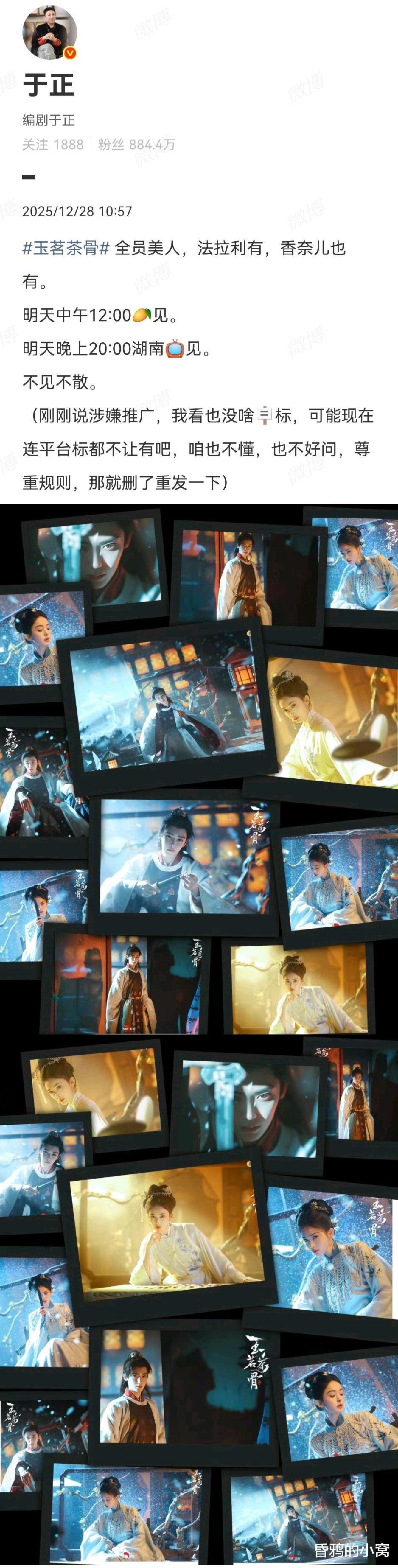 2025 年 12 月 28 日,于正为新剧《玉茗茶骨》的一番宣传,直接把这部剧和女主角古力娜扎推上了舆论的风口浪尖。一