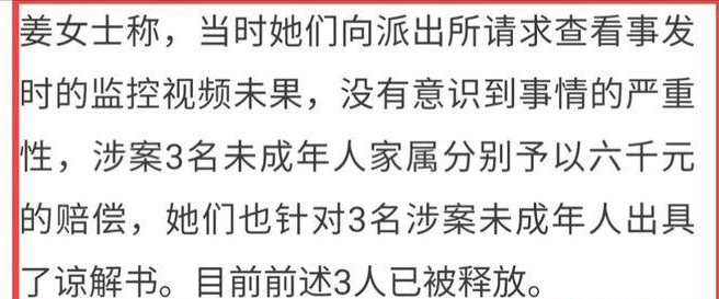 最终,由于他们都是未成年人,在赔偿了6000元并对他们进行了教育之后,便直接给释放了。