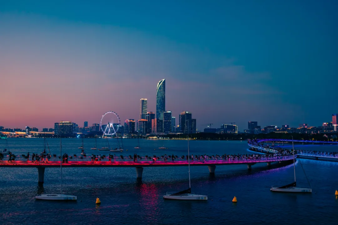 高端会议类则直接看金鸡湖和阳澄湖。会议酒店有800人报告厅和湖景圆桌,可拆分可合并,LED屏、同声传译一应俱全;坐拥一线湖景,30人董事会议或300人大会都能在同一栋建筑完成住宿、用餐会议,五星厨房。