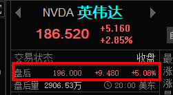 短期内高盛维持对英伟达买入评级,目标价高达240美元,意味着还有32%的上涨空间。但分析师也提示注意AI基础设施支出减缓、竞争加剧带来的毛利下降等潜在风险。盘后英伟达大涨: