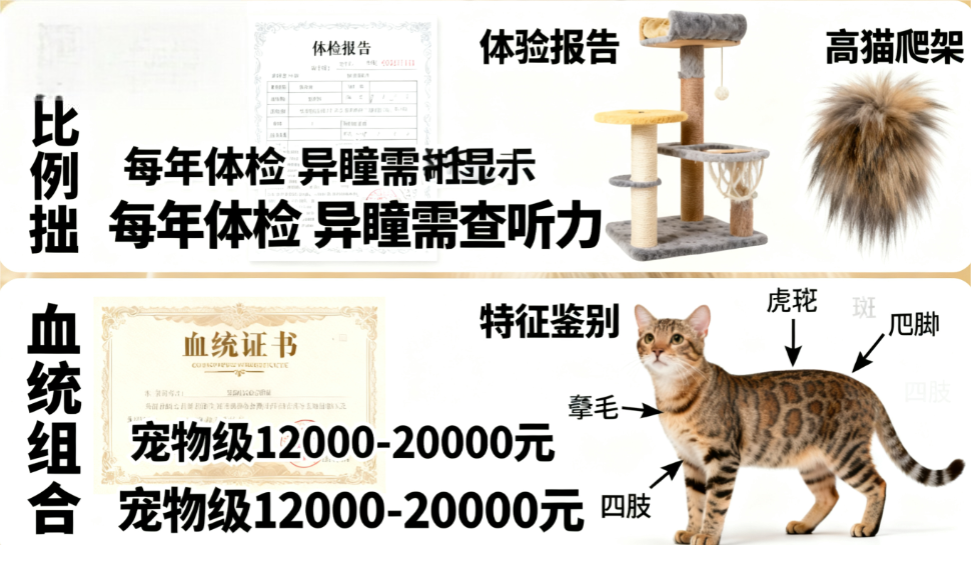 年龄选择:6-8 月龄最佳,此时体型与被毛特征已完全显现,且已完成基础疫苗接种与驱虫;避免购买 3 月龄以下幼猫,其身体发育尚未成熟,难以判断品种纯度与健康状况。