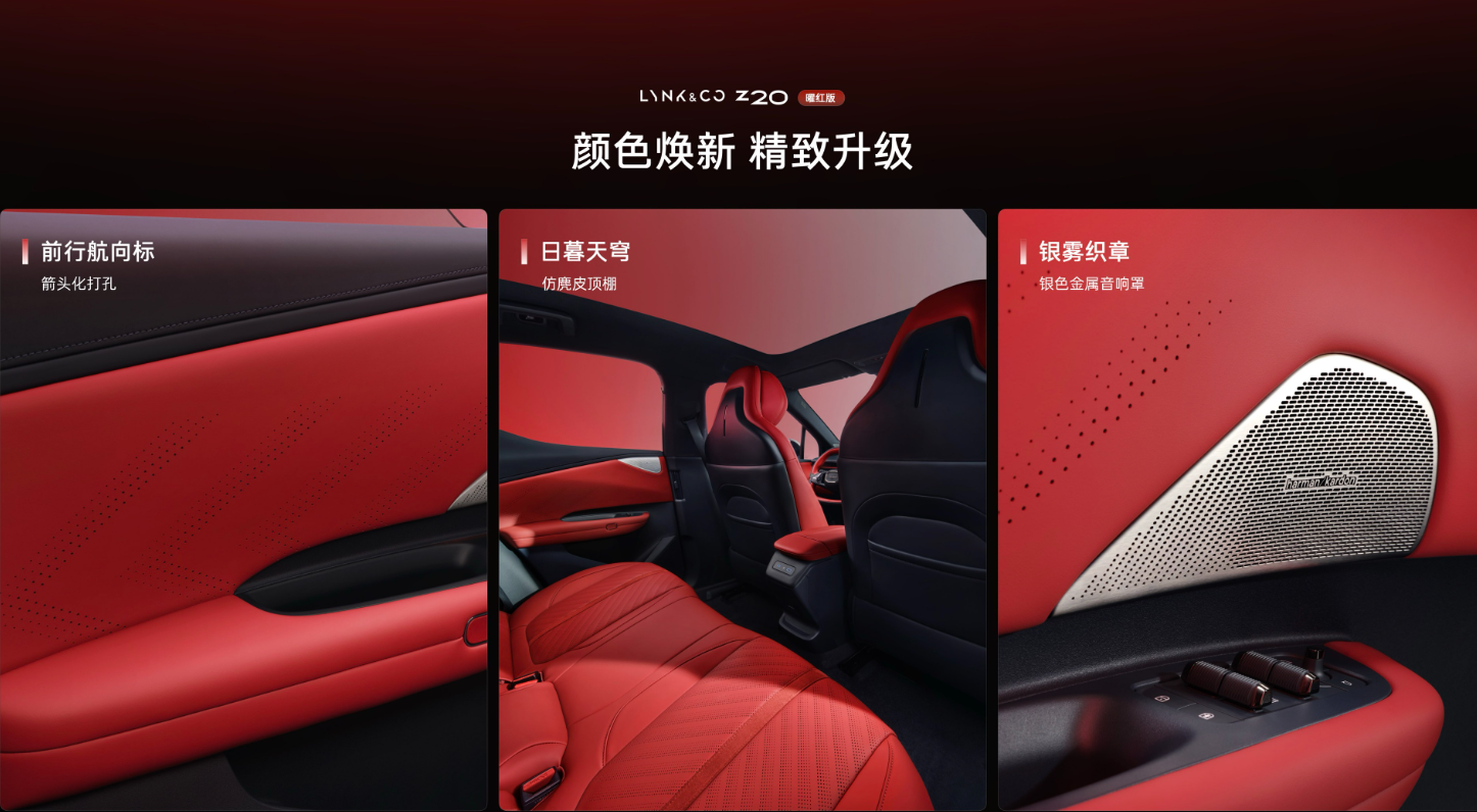领克Z20曜红版的设计理念源自对年轻市场的深刻洞察。其外观采用巴塔哥尼亚银配色,与曜红内饰形成鲜明对比,这种撞色风格不仅视觉冲击力强,更融入了超跑级的工艺元素。内饰方面,红色主题并非简单的色彩应用,而是借鉴了法拉利和保时捷等品牌的灵感,通过箭头式打孔设计、仿麂皮顶棚和金属感音响罩等细节,营造出高级而不艳俗的氛围。对于追求质感的年轻人来说,这种设计打破了传统红色内饰的刻板印象,让日常驾驶空间变为移动的美学展厅。更重要的是,这些配置将高端体验带入15万内市场,使得消费者无需高昂投入就能享受媲美豪华车的细节处理。